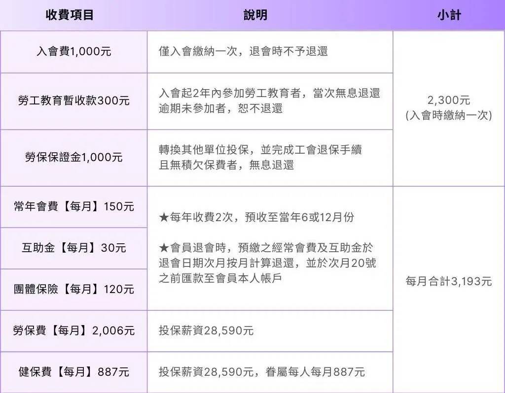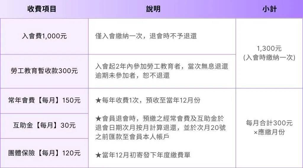 工會會於入會時清楚列出明細,讓會員清楚知道每一筆費用用途。